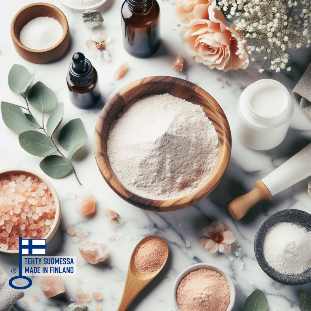 Pääraaka-aineemme on laadukas Himalajan suola, joka tulee suoraan Himalajan vuoristosta, sen puhtaimmassa ja mineraalipitoisimmassa muodossa. Suola sisältää yli 80 erilaista luonnollista alkuainetta ja mineraalia, jotka täydentävät kehomme tarpeita täydellisellä tasapainollaan. Tämä ainutlaatuinen kristallisuola hellii ihoasi hellävaraisesti ja kosteuttaa aina ihon alemmista kerroksista saakka.
